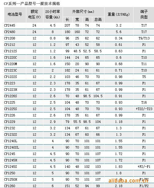 2V、6V、12V三大系列及4V,8V 小系列,电池容量从0.8AH到3000AH,共100多个品种,产品性能优异,质量可靠,具有容量足、寿命长、密封性能好与自放电小等特点。产品***在线检测,现已通过***:2000国际质量体系认证、UL、CE认证。 [极板]由特殊的铅钙合金板栅以及涂在其上的正极活性物质组成。 [负极板]由铅钙系列合金板栅以及涂在其上的负极活性物质组成。 [隔板]采用具有很高贮酸能力的超细玻璃纤维隔板其吸酸量足够参与正负极电化学反应所需的电解液量。 [电解液]含有特殊添加剂的稀硫酸电解液,并且全部被吸附在隔板中,电池中无流动酸。 [安全阀]由耐酸***的聚合橡胶制成,自动排放电池内部过多的气体,并保持电池内部气压在安全范围。 [外壳及上盖]全部由高强度,耐撞击的ABS塑料制成。 [端子]由表面镀银的铜或铅合金制成,并采用的密封结构和技术。