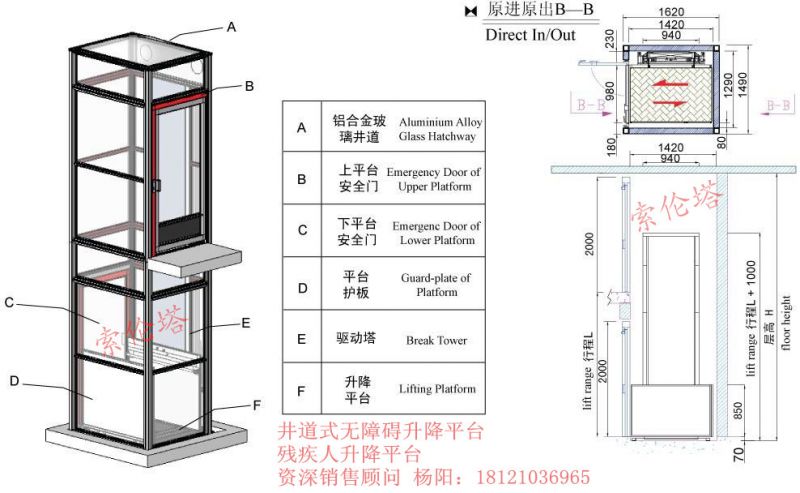 井道外形尺寸: 1620mm*1490mm*L mm
