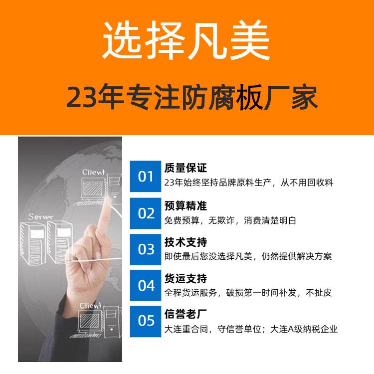 大连凡美UPVC防腐瓦板产品投放20多年以来,受到化工企业的普遍好评!凡美UPVC防腐瓦板特点: 1. 抗强酸碱腐蚀2. 强度大、韧性好3. 隔音、降噪4.超久使用性***5. 隔热效果好,夏不怕热,冬不怕冷6. 节能、环保7. 防火性能好,达到难燃B1级标准,消防无忧8. 费破损免费补发;