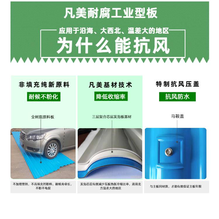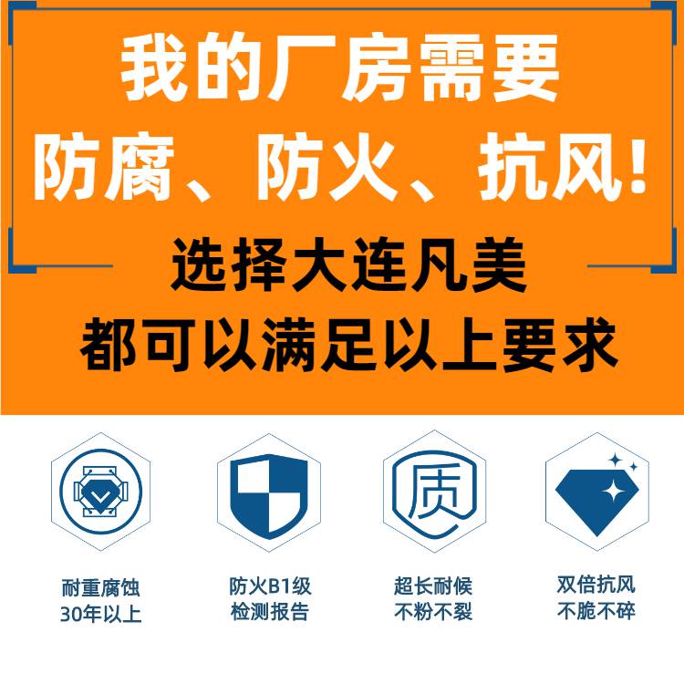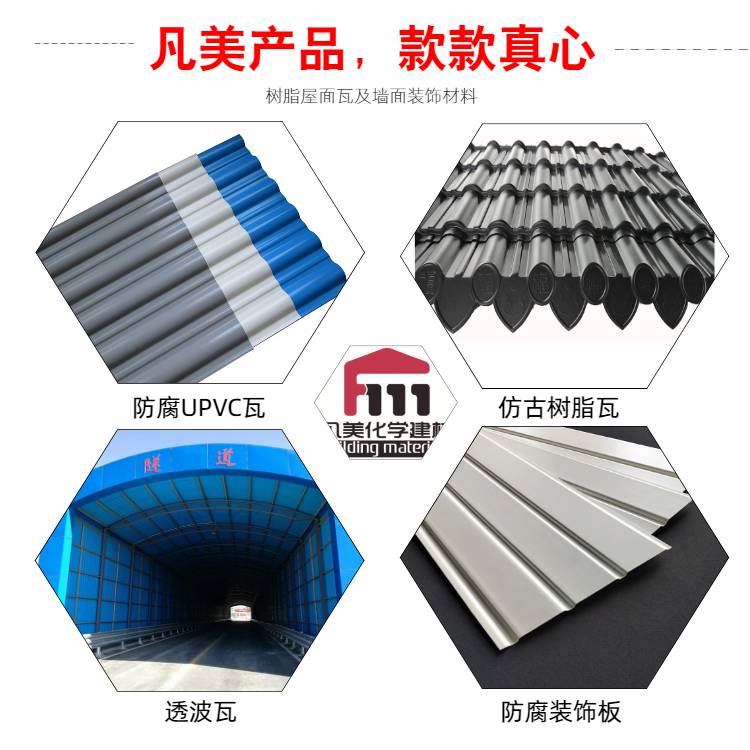 大连凡美化学建材有限公司金州分公司是国内环保节能建筑高分子复合材料制造及服务商;UPVC三层复合芯层发泡板技术的研发者,UPVC屋面瓦厂家。 公司产品均以“凡美”作为中文注册商标。主要产品有凡美氟塑彩瓦(合成树脂瓦、塑料瓦、塑钢瓦)、凡美氟塑工业型板(UPVC波浪瓦 UPVC波浪板 UPVC屋面瓦 UPVC防腐内衬瓦)、凡美氟塑外墙装饰板(UPVC挂板 UPVC洁净板)、凡美氟碳漆、凡美塑料瓦机械等系列,同时提供环保节能、简约实用的***坡屋面系统、外墙节能装饰系统、建筑及钢结构用氟涂料系统的解决方案和服务。 公司不仅具有化学建材产品的研制开发能力,而且拥有其生产设备的专门研制机构和生产基地。 凡美一直努力追求“卓尔不凡”的产品品质和“尽善尽美”的服务理念,用26年行业经验为用户提供高品质产品和从设计到施工的系统解决方案。为在住宅产业现代化与住宅智能化的进程中,促进人居环境更环保、更节能、更舒适、做出更大的贡献! 凡美氟塑彩瓦工程遍及美国、加拿大、英国、俄罗斯、乌克兰、哈萨克斯坦、韩国、新加坡、马来西亚、菲律宾、印尼、哥斯达黎加、中国台湾等。 厂家提醒:不是所有的塑料瓦、塑钢瓦、合成树脂瓦、PVC波浪瓦、PVC波浪板、PVC挂板都具有消音、隔热、耐酸碱腐蚀的特性,凡美UPVC防腐板相比普通PVC板具有更高的质量稳定性、耐候性和防腐蚀性能,适用于各种厂房车间室内外的防腐、防火、耐候的要求,在化工、石油、能源、制药、食品加工等领域为用户解决防腐防锈难题。