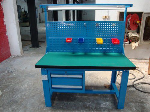 工作台是为工厂的组装、生产、维修、操作等工作而专门设计。作为各种作业的操作平台,工作台适合钳工、模具、装配、包装、检测、维修、生产办公等各种生产用途。工作台的桌面经特殊处理,具有防腐、抗冲击力强等特性,多种桌面的选择,可配合不同的使用要求。所配置的抽屉、柜门方便使用者存储工具。工作台桌面上可以增加不同的组件,如百页、方孔挂板,电源插座、照明灯具、吊具等。配合零件盒及各种不同的挂钩,工作台还可以存放各种常用的零件、工具等,更加合理地使用空间,充分满足实际生产操作的需求。