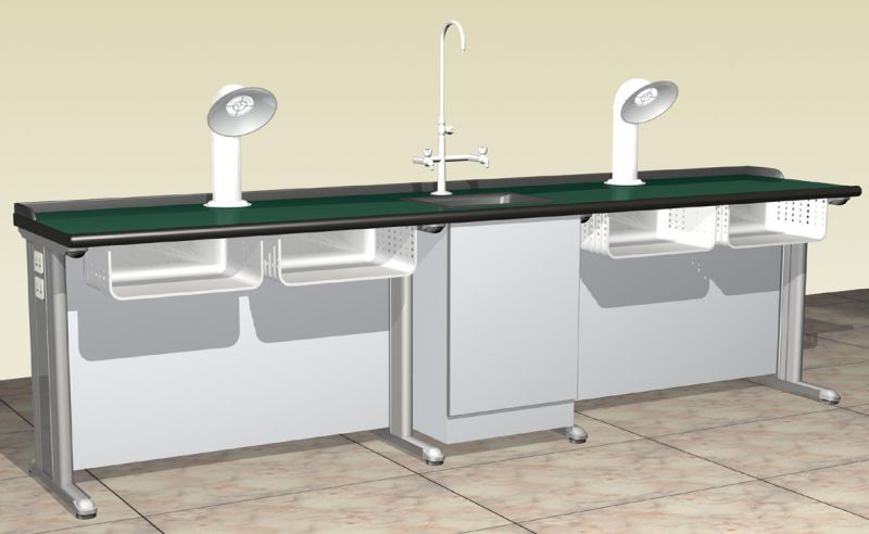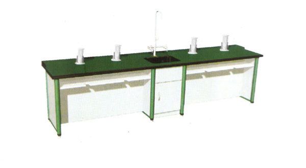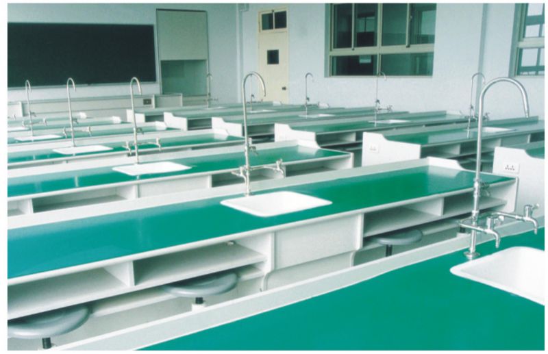 三.给排水部分:选用优质唐水封式化验水槽,可防止废水回流废渣堵塞。铜质镀铬化验三联水嘴,采用陶瓷心片水阀滴水不漏,牢固耐用。