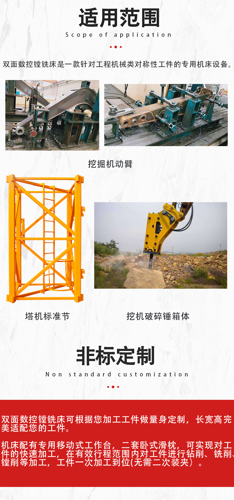 | 主轴锥孔锥度:BT50 | T型槽数目:1 | 作用对象:大型对称性零件/行车端梁/塔机 |