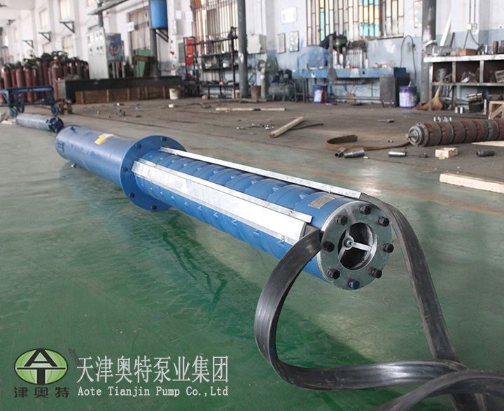 5、高扬程潜水泵在泵与电机中间增设轴向力承载器,扬程可提高到900m。