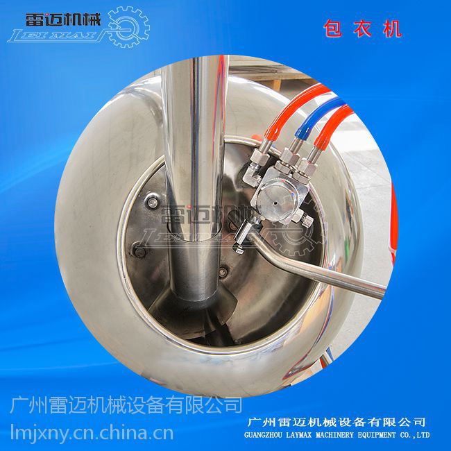 本机是对中、西药片片芯外表进行糖衣、薄膜等包衣的设备,是集强电、弱电、液压、气动于一体化,将原普通型糖衣机改造的新型设备。主要由主机(原糖衣机)、可控常温热风系统、自动供液供气的喷雾系统等部分组成。主电机可变频调速,它是用电器自动控制的办法将包衣辅料用高雾化喷枪喷到药片表面上,同时药片在包衣锅内作连续复杂的轨迹运动,使包衣液均匀地包在药片的片芯上,锅内有可控常温热风对药片同时进行干燥,使片药表面快速形成坚固、细密、完整、圆滑的表面薄膜。