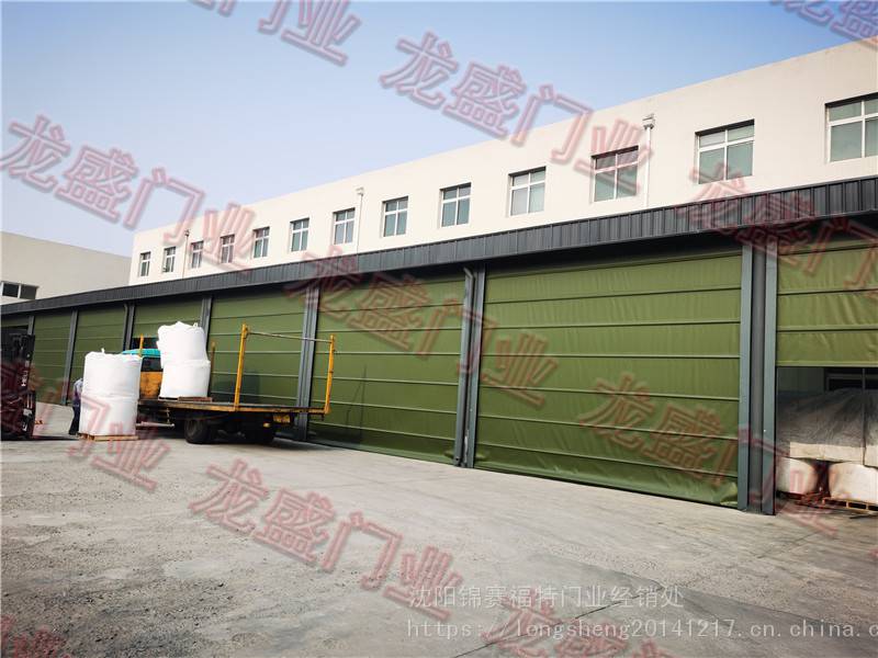 7.门帘—选用法国进口高强度工业织布,厚度0.8mm,颜色为多色可选,中间加装透明视窗, 使人员车辆出入更安全,具有高抗拉强度,高抗穿刺性能,适用于频繁开启,高速运转;