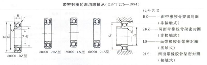 具有防尘盖、密封圈轴承适用低转矩场合下使用,在生产时已装入适量的润滑脂,安装时不需要清洗和加润滑脂。该脂具有防锈性,适合于运行温度在-30゜C至110゜C之间。接触式密封轴承RS1(2RS1)型,其密封唇封住内圈户部的凹槽,具有良好的密封性能。也可为各种机械配套,尤其适合于汽车发电机的高低温特性。也可根据用户不同要求填充特殊的高低温润滑油脂。油脂量与轴承尺寸有关,一般为轴承空间的25%-35%。