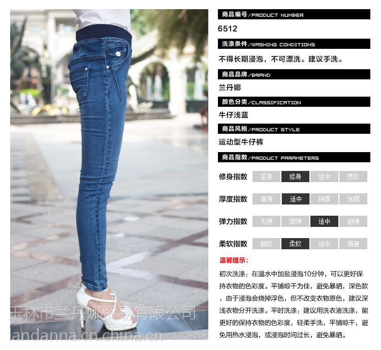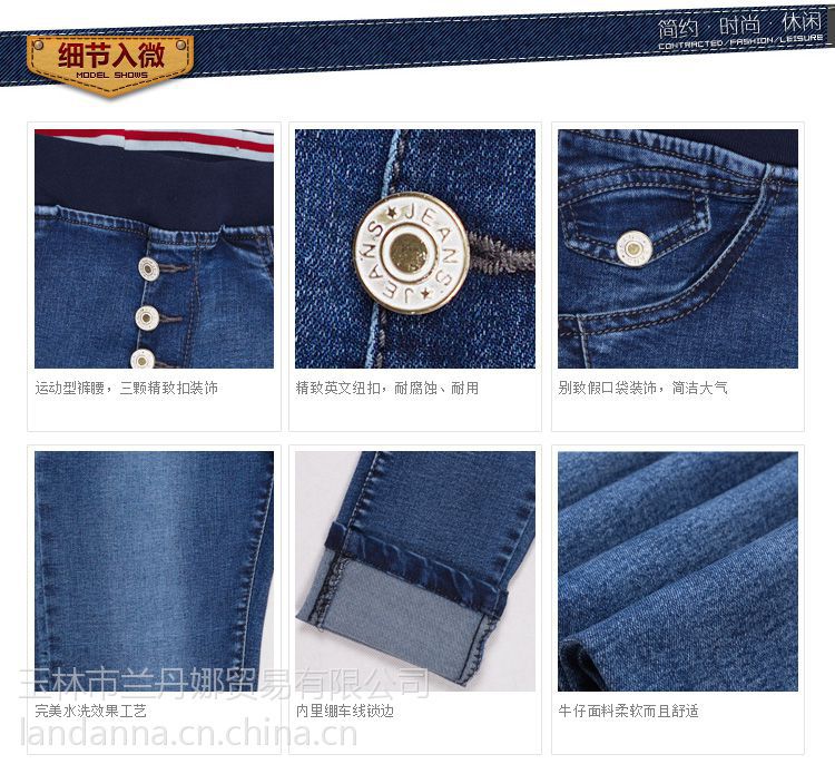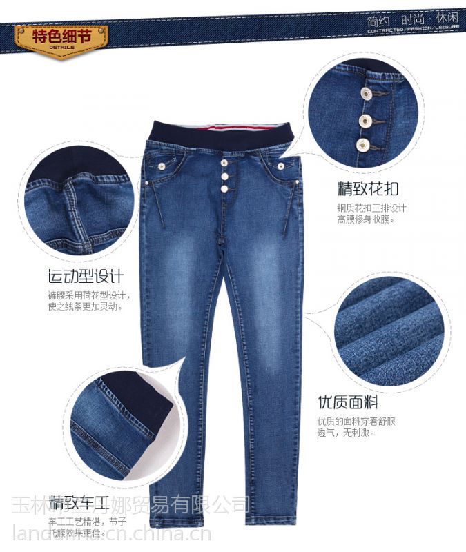本页信息为玉林市兰丹娜贸易有限公司为您提供的"2015秋冬新款松紧腰牛仔裤女长裤 女式中腰牛仔裤 修身小脚裤批发"产品信息,如您想了解更多关于"2015秋冬新款松紧腰牛仔裤女长裤 女式中腰牛仔裤 修身小脚裤批发"价格、型号、厂家请联系厂家,或给厂家留言。 进入店铺