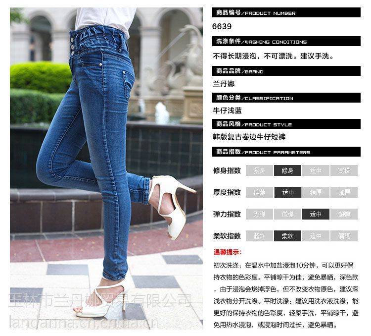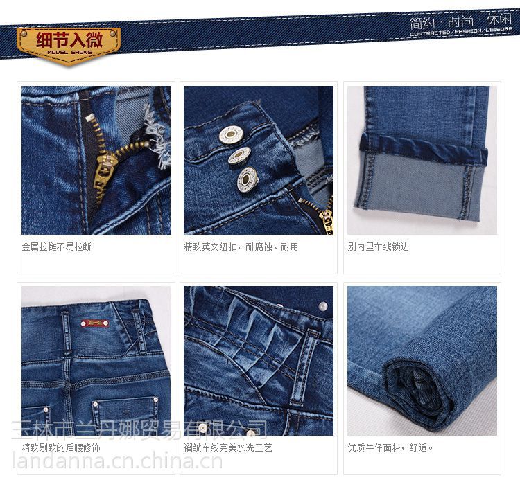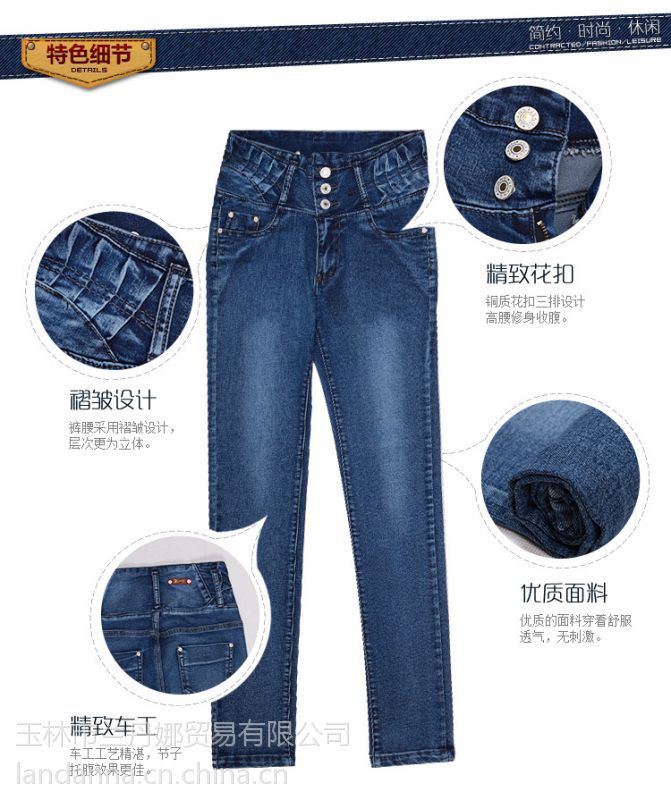 本页信息为玉林市兰丹娜贸易有限公司为您提供的"2015秋季新款韩版高腰牛仔裤女弹力修身显瘦小脚铅笔裤女一件代发"产品信息,如您想了解更多关于"2015秋季新款韩版高腰牛仔裤女弹力修身显瘦小脚铅笔裤女一件代发"价格、型号、厂家请联系厂家,或给厂家留言。 进入店铺