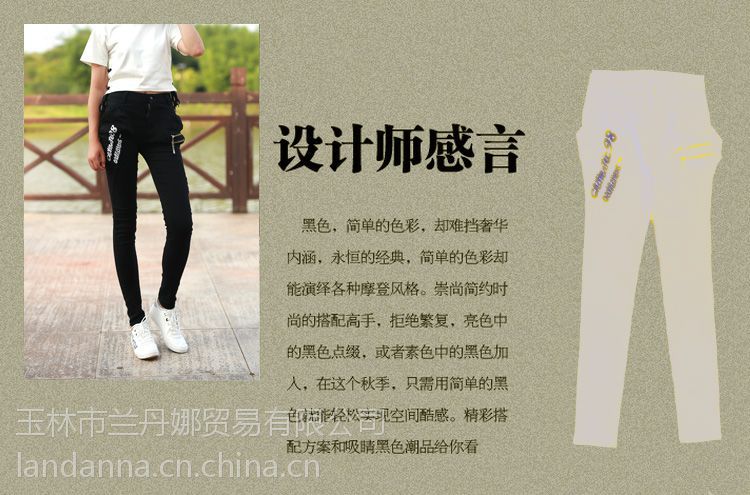 本页信息为玉林市兰丹娜贸易有限公司为您提供的"新款秋冬牛仔裤女休闲修身女式铅笔裤小脚裤 原单牛仔裤批发"产品信息,如您想了解更多关于"新款秋冬牛仔裤女休闲修身女式铅笔裤小脚裤 原单牛仔裤批发"价格、型号、厂家请联系厂家,或给厂家留言。 进入店铺
