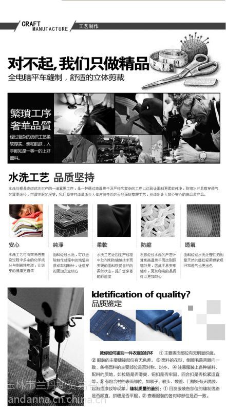 玉林兰丹娜贸易有限公司 0775-2294499是集牛仔裤服饰设计、生产、批发销售于一体的企业。专注中***牛仔裤加工、牛仔裤贴牌、牛仔裤OEM,为国内外众多牛仔裤品牌加工生产高质量的男女牛仔裤,是专业的牛仔裤加工厂,我们提供牛仔裤批发,一件代发,代理***等服务,是批发进货的去处。淘宝牛仔裤供应,牛仔裤团购供货。我们正全力以赴 以的产品,***的价格,的服务,打造国内线上、线下牛仔裤批发进货之一站式服务平台,欢 迎客户前来洽谈与合作。