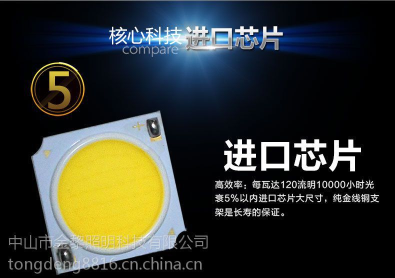 | LED灯珠颗数:1颗 | 封装工艺:COB | LED芯片品牌:三安光电 |