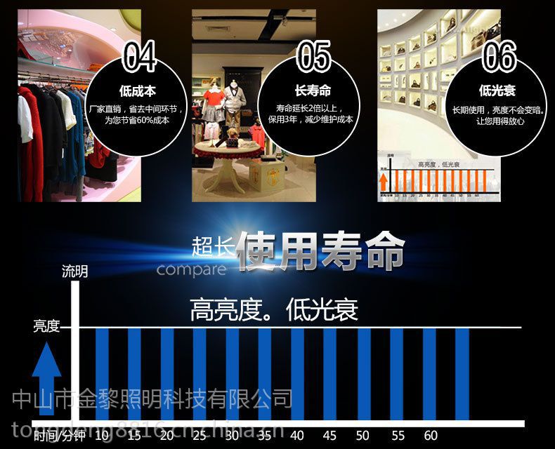 广东省中山市金黎照明科技照明有限公司是一家以研发、生产、销售为一体的专业LED工程商业照明定制生产厂家,公司成立于2005年,旗下有金黎、时尚阳光、梵一、光柏士等四***。金黎照明的产品包括LED室内照明、LED商业照明、LED工程照明、LED家居照明等领域。专业生产LED筒灯、LED天花灯、LED珠宝灯、LED轨道灯、LED格栅灯、LED面板灯、LED豆胆灯、LED射灯、LED吸顶灯、LED厨卫灯等一系列产品。 金黎照明十年来专注研发多项实用新型***技术,其中长寿命光源自动修复技术为国内最***的LED应用技术,***解决LED死灯问题,称之为不死灯。让led筒灯用上100000小时成为现实。颠覆众了多工程照明使用者认为led***的不耐用,技术的不成熟观念。金黎照明不死灯概念产品,比***更实惠、更耐用、跟一般产品价格差不多,却节约了人工成本的3倍以上,金黎照明产品超高性价比,让众多工程照明寿命延长2倍以上,人工成本,价格成本等节约5倍以上。 金黎照明让您售后无忧,***,***产品质保三年,五年免费维护。专业的服务团队,led工程照明解决方案设计,让工程收款变的很简单。 金黎应用于定位:中高端工程应用led商业照明,连锁酒店照明,办公照明,大型商场照明,酒店照明,超市照明,厂房照明,别墅照明。 金黎目标:以平民的价格创造出品质的产品,产品质量比雷士,飞利浦,三雄,佳美,我们做到更耐用。。。。