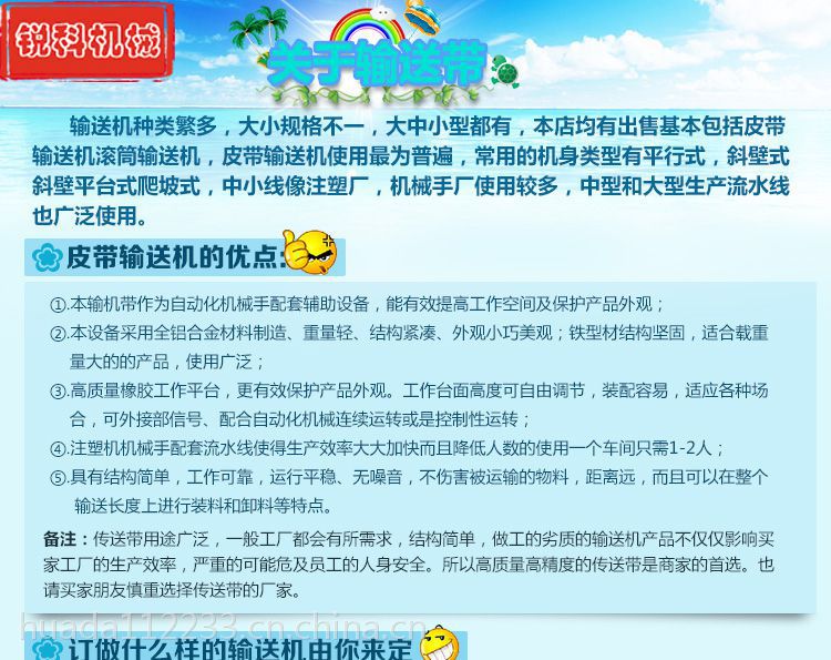 东莞市常平锐科机械设备制造厂(简称“华达电子设备”)成立于1998年,位于广东省东莞市。是一家专业生产销售皮带线、流水线,皮带线,插件线,输送带,喷油线,水濂式喷油柜,恒温烤箱(工业烤箱),移印机,丝印机,烫金机,超声波,超声波清洗机,高周波,插件线,回流焊,波峰焊,锡炉等设备。的厂家。主要产品有:皮带线、流水线、水濂柜、插件线等。公司目前旗下有员工50人,年产销10000台,年销售收入近500万元。公司一贯坚持“质量,用户至上,优质服务,信守合同”的宗旨,凭借着高质量的产品,良好的信誉,优质的服务,产品***近三十多个省、市、自治区以及远销中东等国家。竭诚与国内外商家双赢合作,共同发展,共创辉煌。