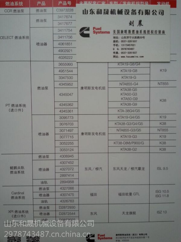 山东和晟机械设备康明斯代理负责人:刘晨经理
