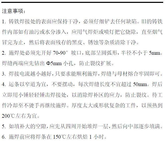 用途:用于灰口铸铁的焊接。铸铁薄件及加工面的补焊,如气缸盖、发动机座、机床导轨、电机壳、齿轮箱等重要灰口铸铁件。也适用于焊接铸铁制成的机械零件等。