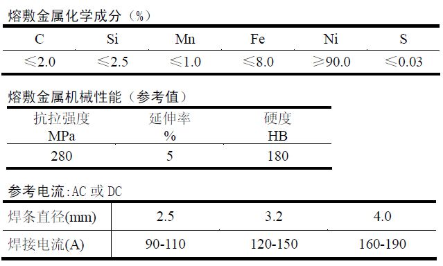| 适用范围:用于灰口铸铁的焊接。铸铁薄件及加工面的补焊,如气缸盖、发动机座、机床导轨、电机壳、齿轮箱等重要灰口铸 | 产地:上海 | 硬度HRC:电谇 |