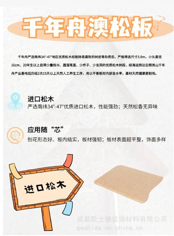 千年舟是一家以多品类中高,端板材的研发、生产、销售为一体的装饰材料企业,致力于向终端消费者提供绿色、环保、高品质的装饰板材及其配套产品。主要产品包括多层板、刨花板、OSB、LSB等基础板材、生态木工板等生态板材以及五金等配套产品。在以板材业务为核心的同时,公司积极向下游定制家居、装配式建筑木质构件等业务延伸,定制家居产品包括衣柜、橱柜、地板、木门等。在研发设计上,通过了“绿色产品认证”。