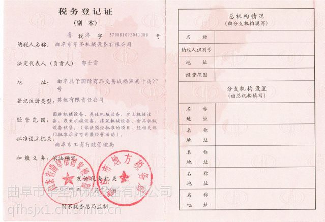 | 登记机关 | 曲阜市工商行政管理局 | 法定代表人 | 郭士雷 |