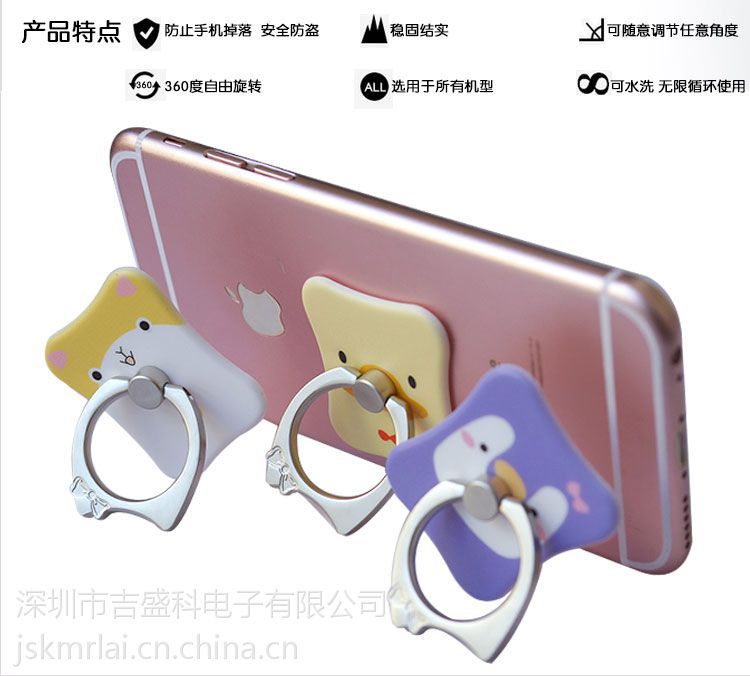 深圳市吉盛科电子公司可批发定制手机平板等数码出产品和车载(配挂钩)各种款式指环支架,底座ABS材料质量***,锌合金度珍珠镍指环,纳米水洗胶可以重复使用,厂家直销,欢迎新老客户前来定制!联系人赖先生电话13692261028(微信)