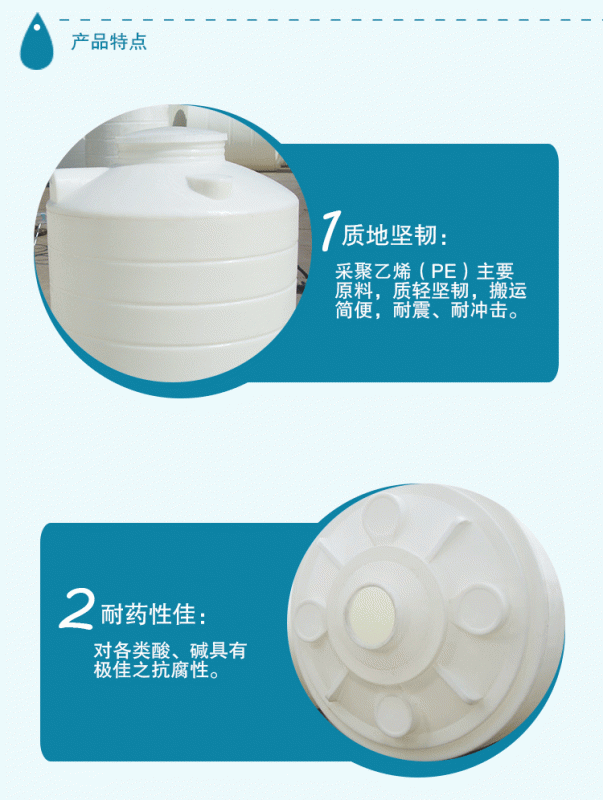 | 牌号:化工酸液储罐 | 品名:PE滚塑水塔 | 材质:加厚防腐 |