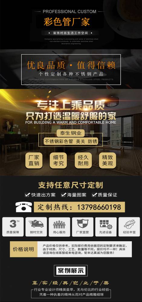 佛山市泰生不锈钢有公司 Foshan taisheng stainless steel material after battalion headquarters 简介 佛山市泰生不锈钢有限公司,位于佛山一环力源出口佛山市顺德区力源不锈钢物流城. 厂房占地面积达一万多平方米,拥有专业研发员工数十名,厂设备引进国际***技术水平, 严格按照*** 9001质量管理体系生产,确保产品专业化质量。 公司主营产品不锈钢机械构造,用、建筑装饰用不锈钢管、工业配管用不锈钢管、食品卫生用、锅炉热交换器用不锈钢管、生活饮用水不锈钢管、不锈钢板材、防滑板及其它产品。产品符合国标GB、美标ASTM、日标JIS等规范。被广泛用于石油、造纸、化工、机械、食品卫生、医疗、裝饰、等工程,产品遍布全国各大中城市。我司自开办至今已获***、***14001认证。通过德国RWTUV,***9002、***14001体系认证,中国方圆委***9002及机械木结构用不锈钢焊接钢管GB12770、流体输送用不锈钢焊接钢管GB/T12771产品质量认证。本公司员工从业经验丰富,本着专业的态度,诚信为本的经营理念,为广大新老客户提供优质的产品与服务。