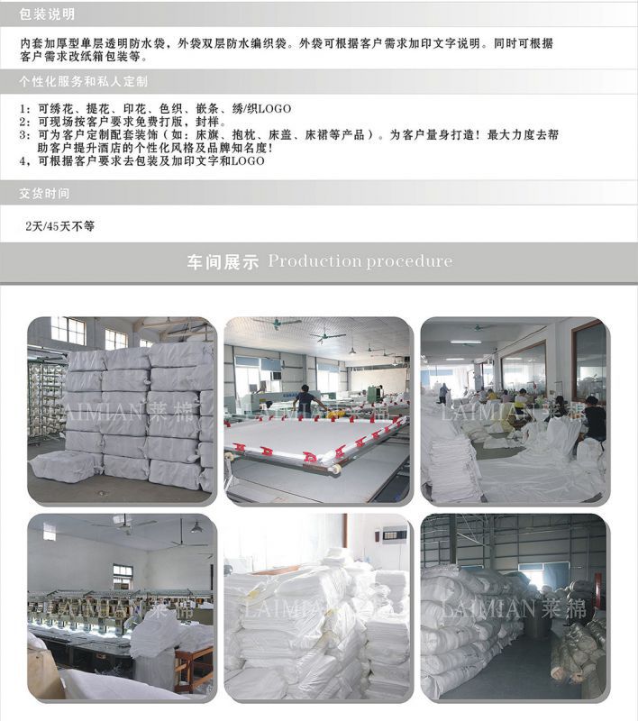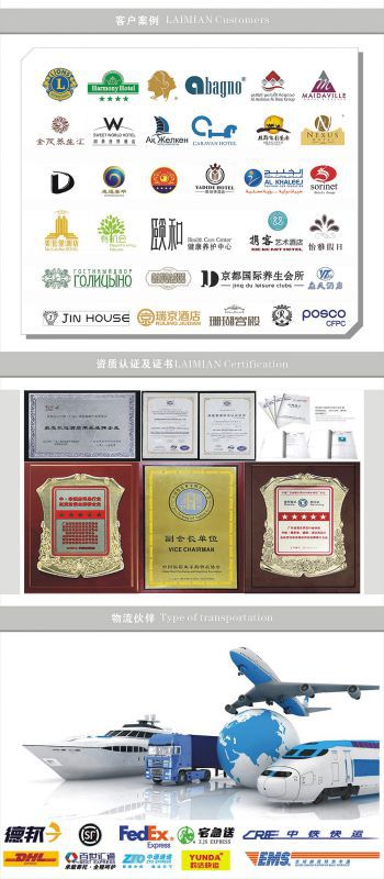 广州莱棉酒店用品有限公司是酒店布草行业时尚和研发的***,主要销售酒店四件套,贡缎提花套件,纯色套件,酒店浴衣浴袍,酒店浴巾,面巾,方巾,地巾/地垫,纤维被,鸭绒被,鹅绒被,酒店床垫/保护垫,酒店羽绒床垫,酒店床笠等商品。床品全部采用优质长绒棉为原材料的高纱织贡缎。毛巾均采用进口印棉及新疆棉为原料。坚持产品保持简洁,优雅的国际风格。营造精致奢华的酒店氛围。设计结合欧洲流行的花色风格,公司发展一直以来服务了东南亚各个国家和中东及东非部分***酒店的客户,而且得到客户良好的***。并成为他们的酒店布草长期供应商。