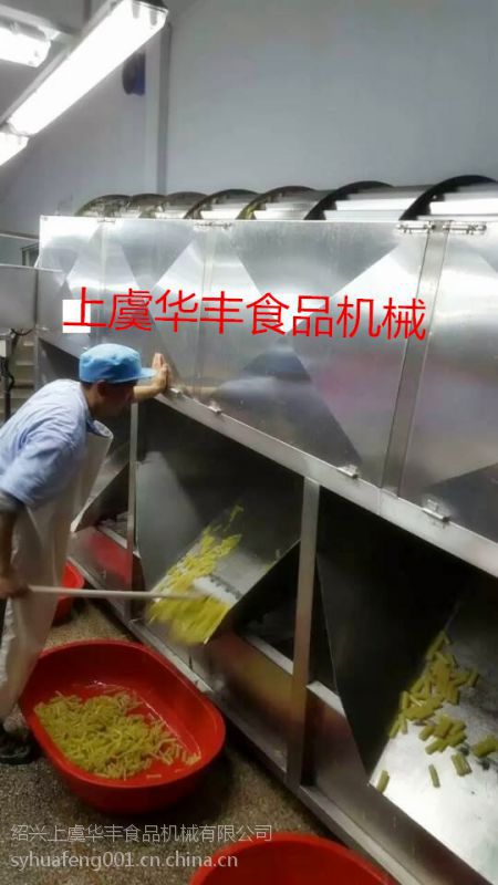 蔬菜食品清洗机,周转筐清洗机,食品速冻机及前处理生产线,烘干脱水机及前处理设备,保鲜蔬菜洁净菜加工设备,盐渍菜酱菜深加工设备,金枪鱼深加工设备,鲜玉米加工设备以及制冷蒸发器等。 1.速冻蔬菜生产线:清洗,蒸煮漂烫,一次冷却,二次冷却,沥干,速冻; 2.脱水蔬菜生产线:整理,清洗,切,风选,漂烫,冷却,离心脱水,搅拌,烘干;3.酱腌菜生产线:清洗脱盐,切,拌料,包装,排气杀菌,冷却,风干;4.保鲜蔬菜净菜加工生产线:多道清洗,分拣,切剥,清洗,杀菌,漂洗,沥水;5.全粉生产线:漂洗,切,蒸煮,冷却,脱水,烘干,磨粉; 6.两次杀菌生产线:作为包装后的蔬菜及肉类食品的二次杀菌设备有:杀菌-冷却-风干三大部分组成 7:果脯加工设备:挑选—清洗去杂—预煮—浸糖—烘干—调味—包装8:金枪鱼深加工:解冻-蒸煮-去皮-去头尾-去内脏和鳃-分割-包装 单机设备如下: 1、清洗机:高压清洗机、气泡清洗机、滚筒清洗机、分拣清洗机、翻爪清洗机、振动洗涤机、毛刷清洗机、辣椒叶清洗机、粽叶清洗机、MQJ日式毛发清洗机、周转筐清洗机 2、蒸煮漂烫杀菌机:螺旋漂烫杀菌机、链式杀菌漂烫机、臭氧杀菌机、提篮式蒸煮漂烫机、巴氏灭菌机 3、冷却机:冰水冷却机、常温冷却机、淋水冷却机、流水槽冷却机 4、沥水机:振动沥水机(冲孔网型,格栅型)、振动风冷沥水机、风干沥水机、三足式离心甩干机 5、分级机:风力选别机、滚筒分级机、毛豆分级机、振动分级机 6、干燥机:蒸汽箱式烘干机、燃油式烘干机、带式脱水烘干机、烘道干燥机 7、速冻机:0.5-5T系列IQF流态化单体速冻机, 8、分拣输送带:不锈钢网带、食品级平皮带、不锈钢板带、塑钢网带 9、粽子生产相关设备:粽叶清洗机、淘米机,洗米机,润米拌料生产线、粽子风冷计数生产线等; 10、其它专用设备:豆芽去壳生产线、年糕加工设备,葛根加工设备可加工成葛根片和葛根全粉,葛根全粉细度可达1000目; 11.氨冷风机(蒸发器)是公司的制冷配套产品,采用铝管铝片液压涨管工艺制作。专门生产速冻机专用蒸发器。 上虞市华丰食品机械有限公司作为专业开发和生产果蔬加工食品机械的企业,我们秉承“以客为尊、以诚为本”经营理念,坚持“专业创造”的专业道路!将一如既往注重国内外的新技术、新工艺的引进和应用,把***的、的果蔬设备和加工工艺推荐给全国各新老用户,并提供工艺设计-设备制作-安装调试-人员培训等。为改变我国果蔬加工现状,发展中国的果蔬深加工作出应有的贡献,愿和全国食品科研院所工程技术人员、加工企业进行各种形式的合作。