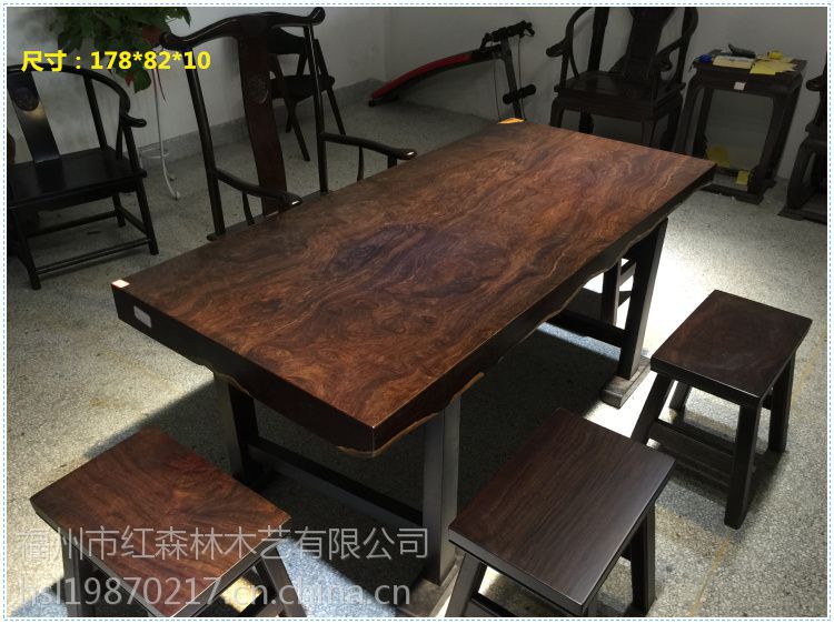 公 司 简 介福州市红森林木业有限公司创办于2008年,位于中国木雕之都福州上街镇。倾力打造一家集设计、;生产、;研发;销售;为一体的大型专业红木根雕生产企业。红森林以时尚高端的中式家具为主导***红木大板市场的潮流,专业生产中、***红木家具,公司经过六年多的艰苦创新,从原来一个不起眼的小作坊发展成为现在初具规模的大型企业。质量是企业生存的本钱,信誉是企业发展的动力,坚定不移抓质量,严格要求讲信誉。公司实力雄厚,生产工艺***,厂房面积达4000多平米,拥有能工巧匠30余名、***的产品设计人员及一支专业的销售团队。 并***公司产品木料全部采用东南亚进口的花梨木、酸枝木、紫檀木、花枝木、大红酸枝木等中******红木,***。公司产品***各地,以优良的品质,新颖的款式,合理的价格著称国内外。产品款式多样、规格齐全,古朴典雅、豪华尊贵,体现了中华名族富丽堂皇之气派,又显欧美雍容华贵之情调。我们的理念:集中华之工艺,创红木之精品!我们的宗旨:用行动证明我们的用心!为了能更好的服务于广大红木爱好者,红森林工厂淘宝直营店于2013年正式上线,现向全国各地经销商***招商中,等待你的加入。欢迎广大红木爱好者亲临体验感受生产成品: 红木大板桌 根雕茶盘 餐椅 餐桌 根雕茶几凳子 桌子配件 雕刻工艺品等 材料介绍:进口黄花梨、红花梨、黑檀、鸡翅木、巴花、紫心木、绿檀、柚木、黄金樟、楠木、菠萝格、斑马木