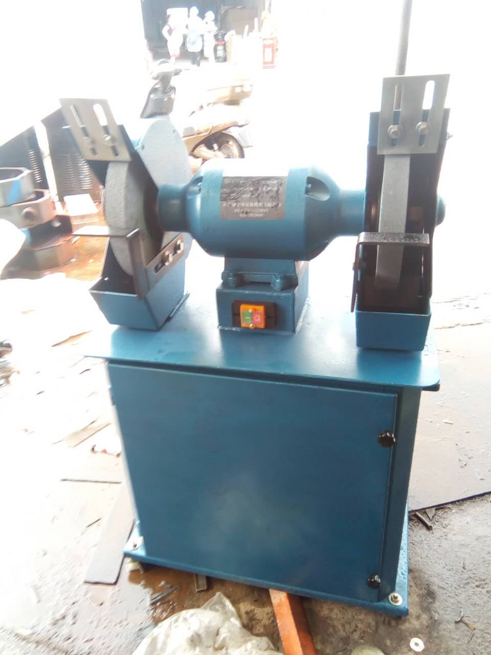使用注意事项:1.砂轮机在使用前必须用500伏以上的兆欧表测量其绝缘电阻,其值不小于0.5兆欧。 2.砂轮机在使用前应详细检查其零件,是否由于运输而受到损伤或有裂纹,紧固件是否有松动现象,如有应加以修复和旋紧。特别注意砂轮有无裂纹,可用木槌轻敲,发出清脆声音方可使用。 3.砂轮机在使用前,应先用手转动轴伸,观察转动是否灵活轻快,细听有无碰擦声。 4.砂轮机及风机旋转方向应与旋转方向指标一致。 5.砂轮机在操作时,不准将工作物与砂轮碰撞,必须逐渐施加压力,使砂轮不受冲击力,避免砂轮爆炸,发生意外事故。 6.砂轮机防护罩除更换砂轮及维修拆除外,平时严禁拆除以保安全。 7.使用中砂轮机二块砂轮磨损其径之差不超过20%。 8.砂轮机在使用中,其声音应始终正常,如发生尖叫声、翁声或其他杂声时,应立即停车检查发声原因,直至设法消除后,方可继续使用。 9.砂轮机使用布袋除尘,当吸附在布袋中的积灰越来越多时会风机的吸风量,所以应定期打开前门,取下积尘袋,将袋中灰尘倒净。