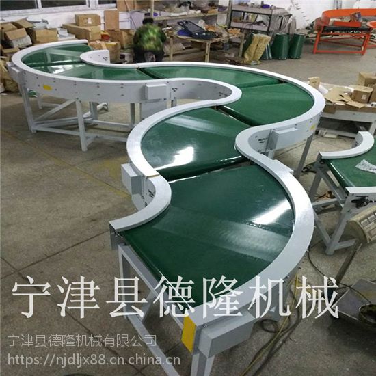 转弯皮带机功能特点:本设备适用于各种流水作业的生产厂家,中小型物品的物流输送,动力系统采用变频调速系统,性能稳定、***、操作简单。线速度一般在三十米每分钟。