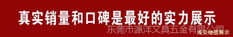 东莞市源洋文具五金有限公司是一家大型的专业生产企业,公司位于全球制造业中心城市:广东省东莞市,交通非常便利。 源洋文具公司成立于2014年,目前拥有50多名熟练员工。公司致力于高品位国内外文具装订配件生产和销售。我司一直以欧美、澳洲、南非、中东和全球其他地区***客户为标准,专业的服务水准是源洋文具公司永恒的追求和目标。源洋文具公司期望与海内外客户真诚携手,共创未来! 衷心感谢您对源洋的关爱与支持! 欢迎合作! 源洋五金文具夹是国内配件优质供应商之一, 五金文具夹通过环保检测 ,产品多样 我司供应的产品有五金文具夹,金属夹,文具夹,塑料文具夹,活页装订夹,二孔夹,三孔夹,四孔夹,六孔夹,九孔夹,多孔夹,O型夹(圆形夹),Q型夹(方形夹),D型夹(半圆夹),活页扣,二寸/三寸快捞夹,70MM/100MM/120mm板夹,2孔/3孔蛇夹(弹簧夹,),四寸/八寸***夹,蝴蝶夹,五金票夹,装订线圈:蛇仔圈。塑料装订配件:塑料孔夹,塑料胶梳,塑料胶扣,胶圈,抽杆条,Q杆等装钉配件材料。