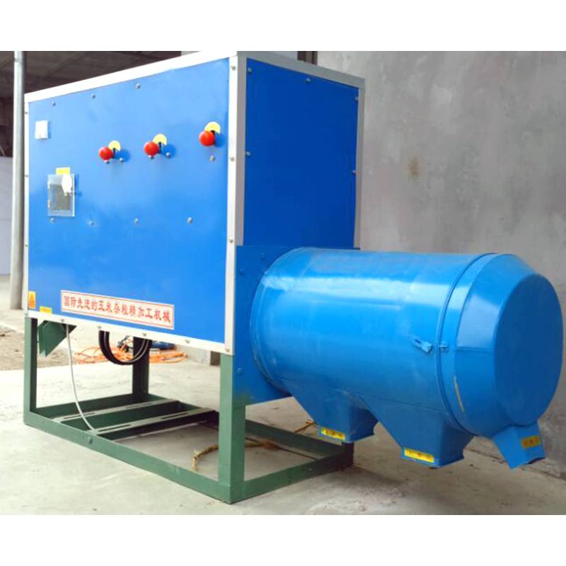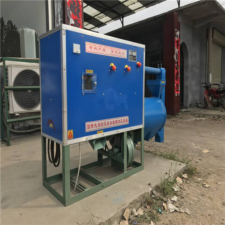 该机可以对玉米性完成简单清理、脱皮、除胚芽、去根据、去黑棋、破碎、分级、制糁、磨粉、分级、抛光、选等工序,得到颗粒度大小的玉米糁和高度玉米粉,新型三道风网四道除尘,加工出来的成品质量非常光滑、圆润、无黑星、无皮子、色泽金黄,完全达到进入超市的水平。工艺为干湿两用,不但可以加工玉米,小麦、水稻、高粱、大豆等杂粮都可以加工。主要适用于广大农村和城乡结合部对外加工的粮食加工作坊,还可以往超市送货。