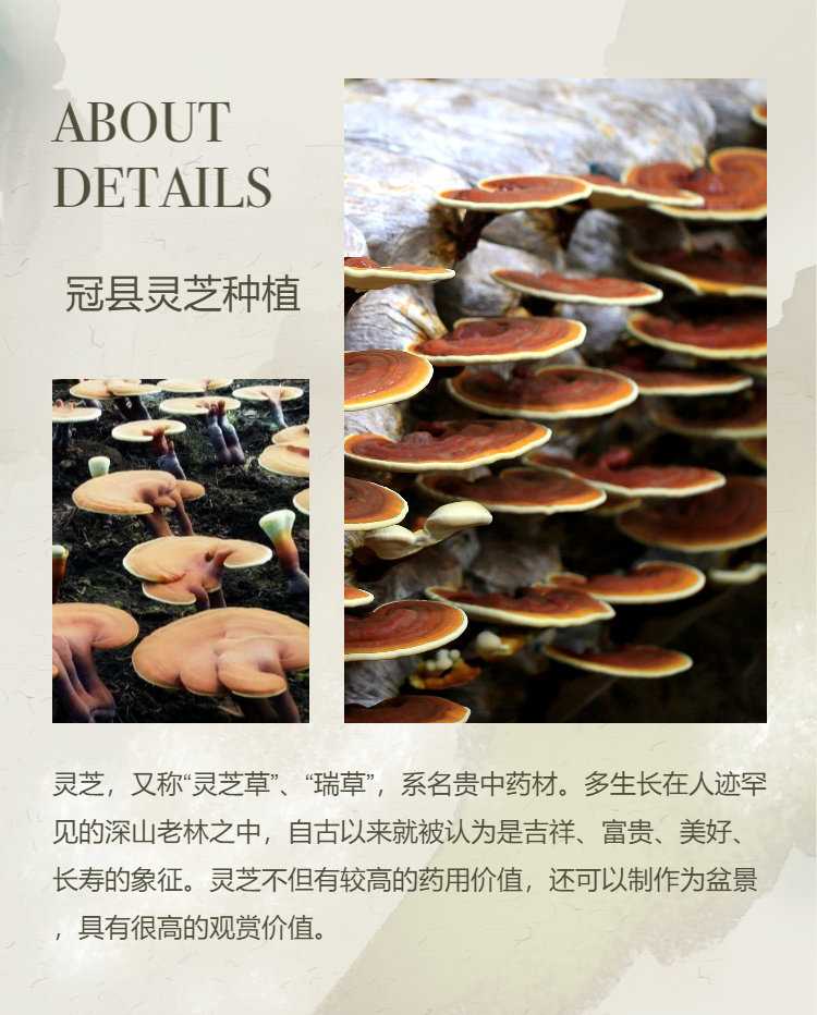 山东冠县康瑞灵芝科技有限公司是一家集灵芝种植、加工及销售为一体的公司,采取“公司+合作社+基地+农户+互联网”经营模式;公司致力于灵芝新品种、灵芝栽培新工艺、灵芝新产品的研发、创意和新技术、新模式的推广与应用;从基料培养到种植、采集、晾晒、加工,全程严把质量关,形成了产、供、销一条龙的体系。主要产品有:泰山赤灵芝、韩芝、椴木灵芝、鹿角灵芝、紫芝、黑芝、灵芝切片、灵芝超细粉、灵芝孢子粉、灵芝精粉、灵芝盆景及灵芝菌种等产品。