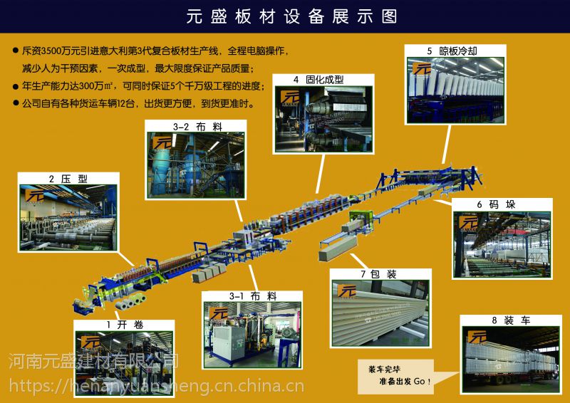 短短十余年的发展,元盛已经成为专业从事新型彩钢板材制造、加工、安装,并集物流仓储、跨国贸易、科技工业园为一体的多元化大型集团化公司。公司位于河南省郑州市龙湖产业聚集区,这里九州通衢,交通非常便利,在苏州、重庆、沈阳、乌鲁木齐等地建有4家分公司。总公司共占地35万平方米,建筑面积30万平方米。在全国建有6个销售处,员工260余人,各种专业技术人员80人。本公司是集科研、设计、生产、施工于一体,具有***的技术、精良的装备、科学的管理,公司设备精良、技术***、检测手段完善,公司已于2008年通过***国际质量体系认证。公司拥有两条(河南一条、新疆一条)具有国际***水平的金属板材喷涂生产线,年生产、加工彩涂卷板能力25万吨,拥有两条进口意大利普玛公司高精度聚氨酯夹芯板生产线,生产聚氨酯夹芯板和岩棉夹芯板,年产量400万平米。公司的聚氨酯复合板,岩棉夹芯板,玻璃丝棉夹芯板,冷库板,彩涂钢板,钢结构设计与施工,销售覆盖国内二十余个省、市、自治区,并远销美国、欧洲、南亚、中亚、中东等国家。被中国板材协会、河南省钢材协会、中国建筑行业协会授予***工程招标***及创知名企业,公司是中国钢结构协会会员单位、中国建筑金属协会会员单位、总公司先后被评为“郑州市***民营企业”、“郑州市新技术***企业;副总经理曹冲杰先生被评为漯河市市劳动模范、漯河市***创业青年等称号。公司广大员工本着“顾客至上,以质量求生存”的方针,发扬、“艰苦创业、团结奋进、降耗增效”的企业精神,走出了一条内外结合,持续改进,滚动发展的强盛之路。公司产品严格按照国际、国家,企业标准组织生产,并通过GB/T19001:2000idt***:2000质量体系认证建立了完善的质量管理体系,使企业更具市场竞争力和发展潜力。