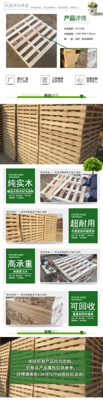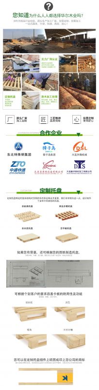 大连华尔木业有限公司是木材加工批发销售、包装木制品定制等产品专业生产加工的企业,主要经营包装箱木托盘、防腐木、建筑模板、方木及特殊规格加工,拥有完整、科学的质量管理体系,以客户至上的理念并以诚信合作共赢,坚持用自己的服务打动客户。欢迎各界朋友莅临参观、指导和业务洽谈。