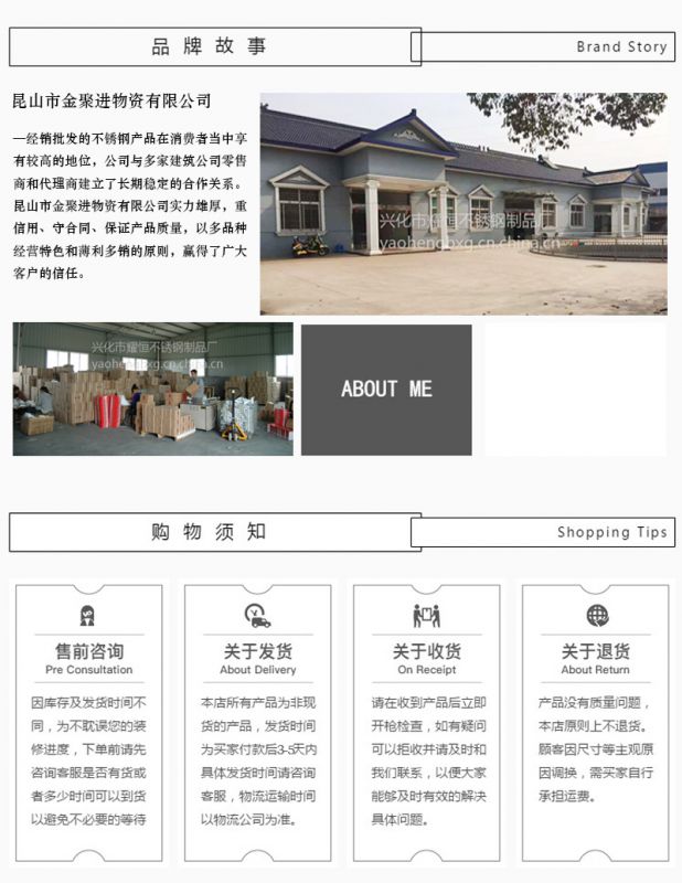 兴化市耀恒不锈钢制品厂欢迎新老朋友来函来电咨询,我们将以的服务,合理的价格,齐全的规格,高质量的产品敬候您的光临!欢迎致电销售电话:
