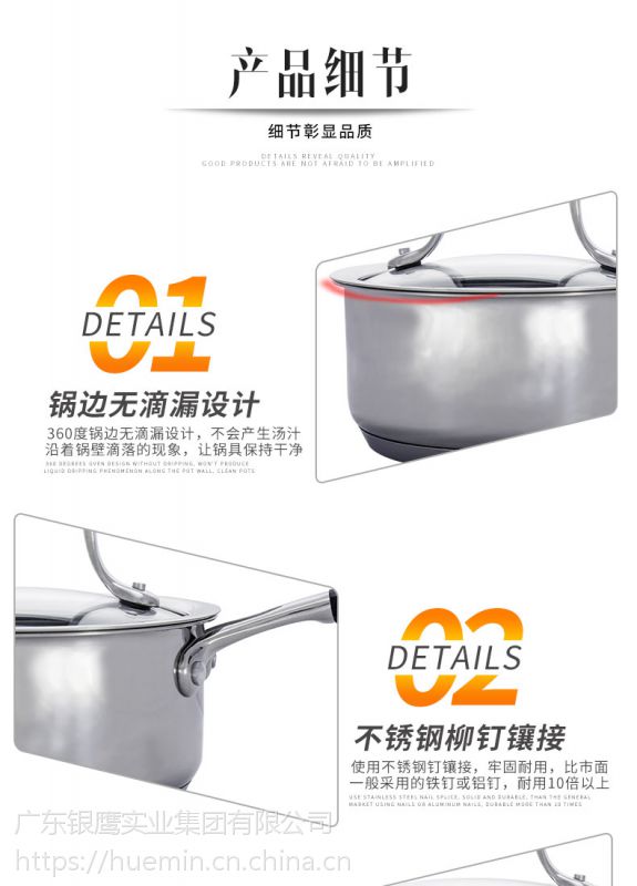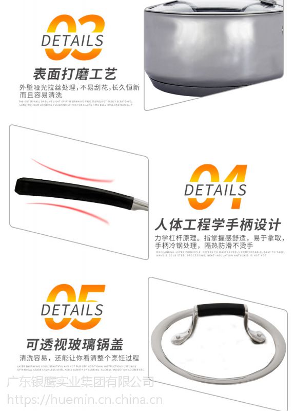 铆钉设计:不锈钢铆钉连接与锅身的距离经过科学检测避免热辐射,防止烫手,***美观。