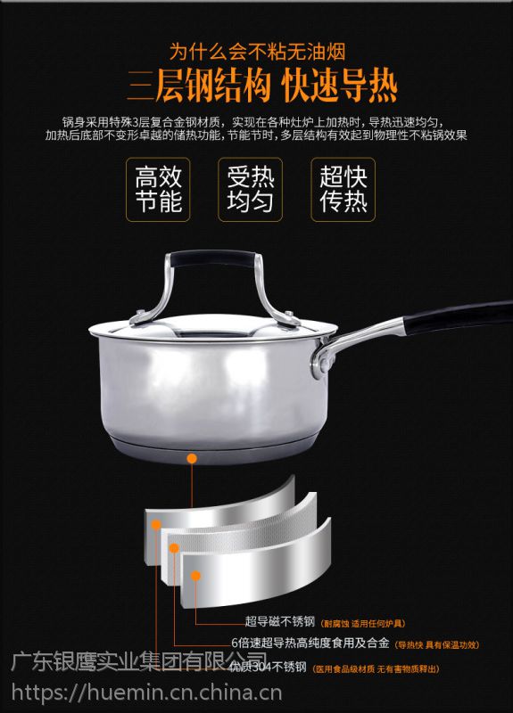 多层锅底:锅底采用钢铝钢3层包裹方式,国际***压焊技术,传热迅速,均匀,储热持久。锅底底层为特殊磁性不锈钢,适合任何炉灶使用。