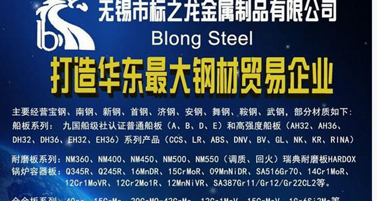 江苏标龙(无锡标之龙)金属制品有限公司是一家专业生产和经营实金属材料,五金化工等产品的企业,公司坐落于美丽富饶的滨江之城—江苏无锡 ,拥有得天独厚的地理位置和便捷的交通环境。 公司成立于2009年1月,有着***的生产技术设备和优良的管理体系,秉承着多年的钢材贸易经验,在市场不断的摸爬滚打中,无锡市标之龙金属制品有限公司锻就了一支技术服务***的专业团队,正逐渐成为华东片区***的专业化的钢材供应商和服务商。主要加工的产品有中厚板、锰板、热轧卷、开平板、角工槽钢等等,产品种类齐全、价格合理、质量***,得到了广大消费者的一致好评认可。公司要求严谨,采用***、守信用、重质量、积极***创新、追求***的路线,用真诚来感动每一位客户,以质量及服务赢得每一位客户的信赖,业务在不断地扩大发展。同时,本公司不断地完善管理,提高工作效率,降低制造成本,以***的价格回报给每位客户,为各友好客商提供最满意的产品和最周到的服务。