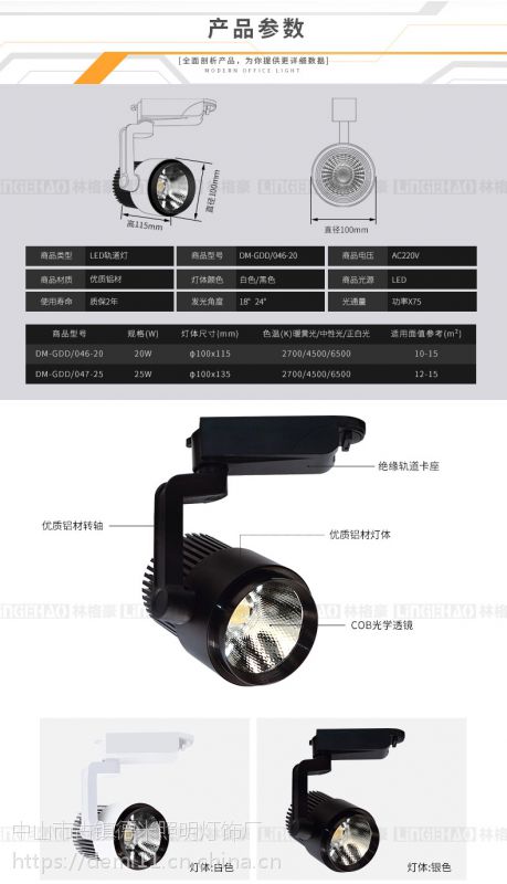led轨道灯20W射灯cob导轨灯服装店展厅家具展览馆博物馆用射灯