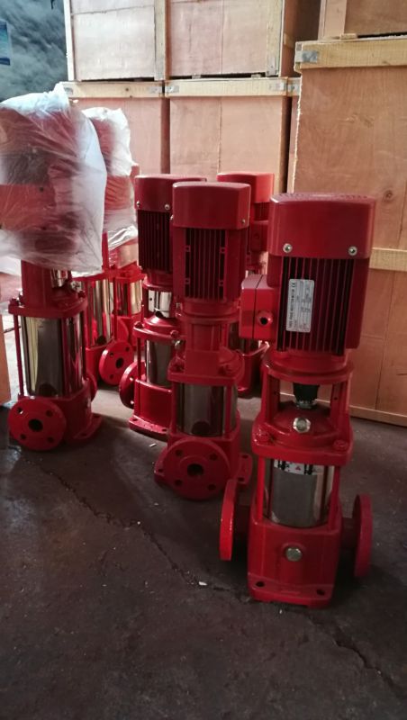 XBD-L型单吸多级分段式消防泵由电机和泵两部分组成,电机为Y行三相异步电机,泵和电机采用联轴器连接,整体为刚性连接,使用时无需校正,泵由定子部分和转子部分组成。泵定子部分由进水段、中段、导叶、出水段、填料函体等零件组成。为防止定子磨损,定子上装有密封环、平衡套等,磨损后可用备件更换。转子部分可由轴、叶轮、平衡鼓等组成。转子下端为水润滑轴承,上部为角接触球轴承,泵的轴向力绝大部分由平衡鼓来承担,其余小部分残余轴下向力由角接触球轴承来承受。进水段、中段和出水段的结合面用纸垫通过拉紧达到密封,用户可根据需要选择。