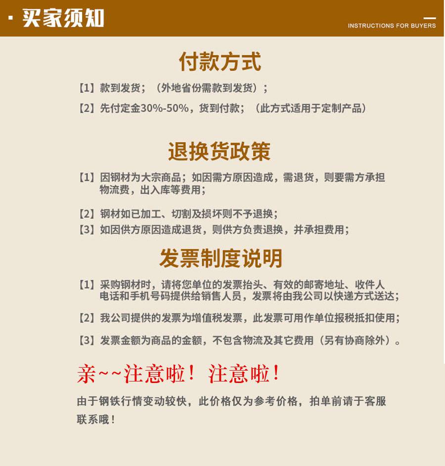 聊城市鸿金管材有限公司:是一家集钢材仓储、销售、运输于一体的大型现货销售企业,常年现货供应冷拔、热扎;薄、中、厚壁无缝钢管、高压锅炉管,低中压锅炉管,不锈钢管,精密钢管,合金钢管,轴承钢管,冷拔钢管,焊接钢管,方矩管,合金钢板,国产耐磨板,进口耐磨板等,所经营产品均为一手货源,无任何周转环节。 聊城市鸿金管材有限公司为了确保业务发展所需资源,与成都钢铁集团、冶钢集团、包头钢厂、宝钢集团、鞍钢集团、天津大无缝、西宁特钢厂、无锡钢厂、衡阳钢厂、山西太钢、上海上钢等各大钢厂建立了长期合作关系。弥补了各钢厂规格生产不全的缺陷,避免了客户采购奔波之苦。良好的信誉,畅通的进货渠道,严格按设计要求和技术标准向用户提供不同材质、不同规格的各种管材,本公司在钢材行业中有较高的信誉,深得用户信赖。 主营材质:10#、20#、35#、45#、Q345B、Q345C、Q345D、Q345E、27SiMn、20Cr、40cr,GCr15,16Mn、45Mn、65Mn、12CrMo(T12)、J55、K55、N80、P110、Cr5Mo、Cr9Mo、20G、15CrMoG、35CrMo、12Cr1MoVG、10CrMo910、A335P11、T91、A335P91、12Cr2MoWVTiB、WB36、SA106B、ST458-III、0Cr18Ni9(304)、1Cr18Ni9Ti(321)、304L、316、316L、316LN、309S、310S、317L、904L、409L、0Cr13、1Cr13、2Cr13、3Cr13等,600多个品种任你选购…… 为了更好地满足客户需求,严格控制采购、销售、仓储和运输四大过程。在质量方针“客户需求至上,环保安全健康,塑造钢贸先锋,实现持续发展”的倡导下,我们借助于高效的运作、合理的价格、***的配送设施,在无缝钢管销售领域树立了良好的***,为广大用户搭建了集中采购、就近服务的资源讯息平台,并以厂方直销价格,由用户休验品质,以提供服务为宗旨,坚持诚信、透明、公平、公正、合理的经营理念面向大众 鸿金公司:品种齐全,货源充足,以质量求生存,向质量要效益。 鸿金公司:诚信经营,互利共赢,携手合作,今日的质量,明日的市场。 鸿金公司:讲究诚信,精诚合作,同样的价格,比质量、同样的质量,比服务。