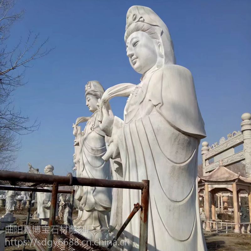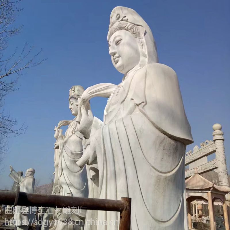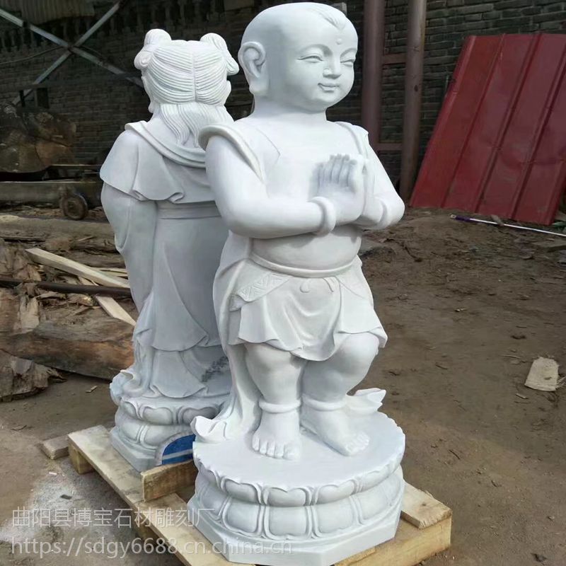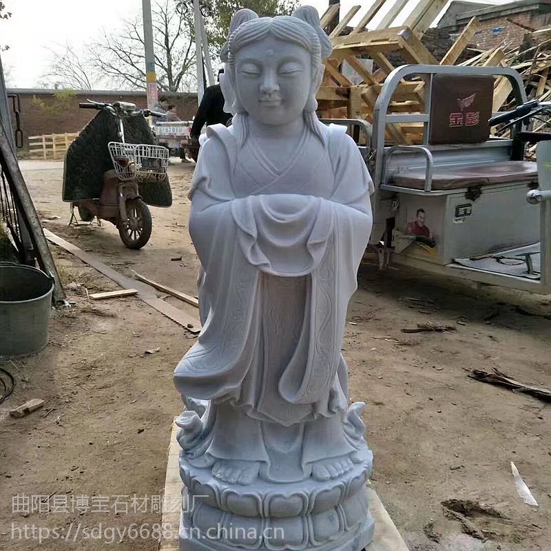 汉白玉石雕送子观音 童男童女***童子一对 门口迎宾人物雕塑