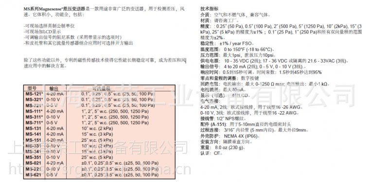 本页信息为上海首荣工业设备有限公司为您提供的"Dwyer MS-121 MS-111微差压变送器"产品信息,如您想了解更多关于"Dwyer MS-121 MS-111微差压变送器"价格、型号、厂家请联系厂家,或给厂家留言。 进入店铺