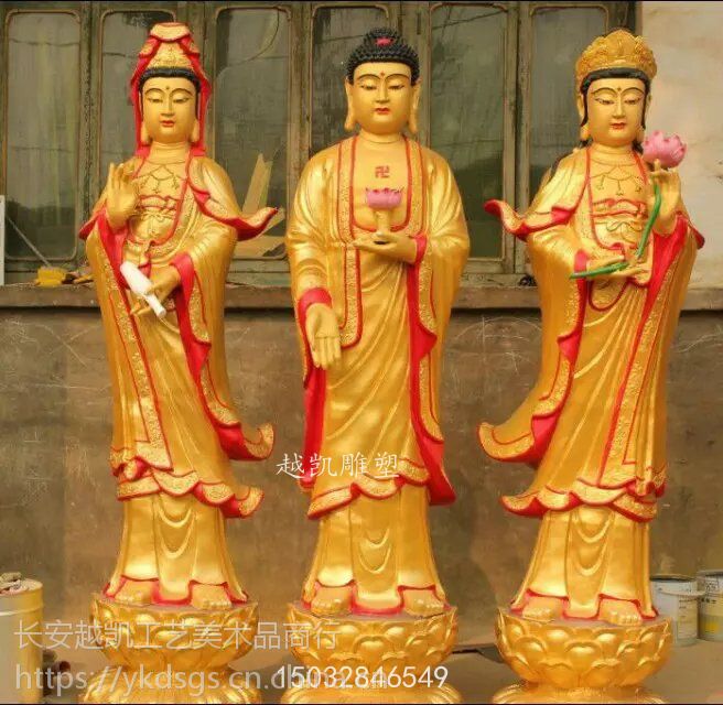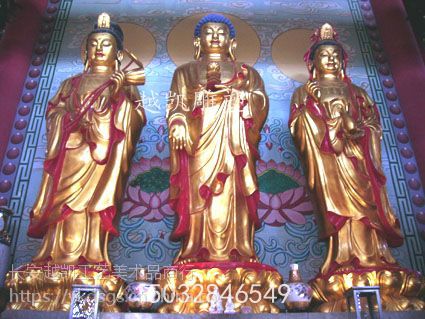 东方三圣也称药师三尊,包括药师佛、日光菩萨和月光菩萨,其中药师如来是主尊。