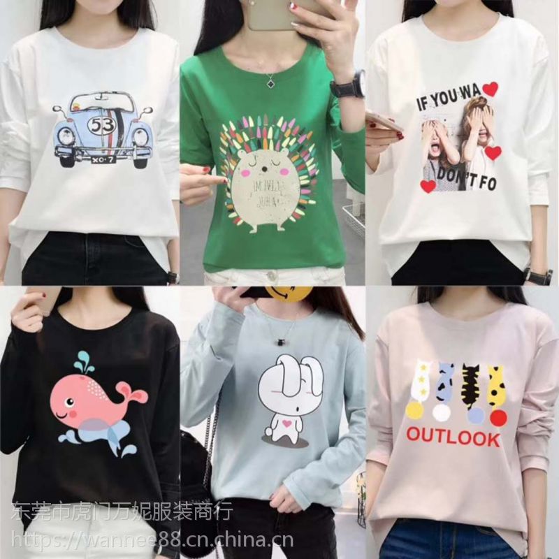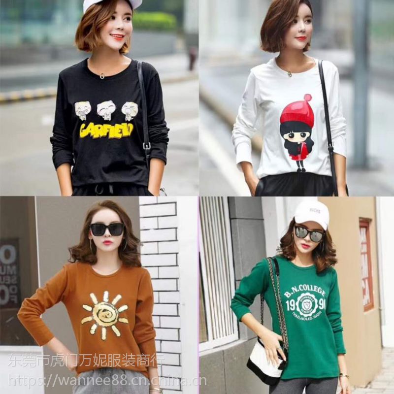 2018实拍棉质女装秋季新款韩版时尚宽松印花字母长袖t恤女潮拉架纯棉女装