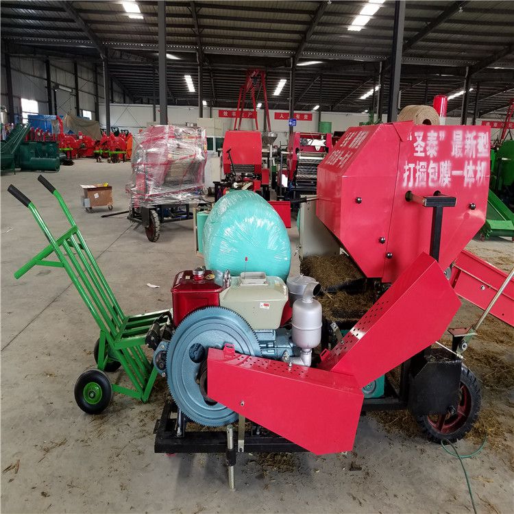 享受国家补贴打捆包膜机厂家直销 圣泰牌青储打包机牧草膜缠绕包装青贮是采用圆捆青储打捆包膜机,将草料逐层压实,制成圆形草捆,然后采用PE专用牧草膜包裹,将草捆紧紧地包裹起来,产生厌氧环境发酵的过程。