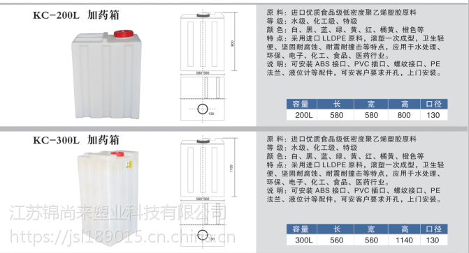 进口PE塑胶原料,采用具有国际***水平的ROTATION(旋转成型)技术,结合用户的需求,严格的质量控制于一体,生产出品种规格齐全、造型美观的塑料加药箱。