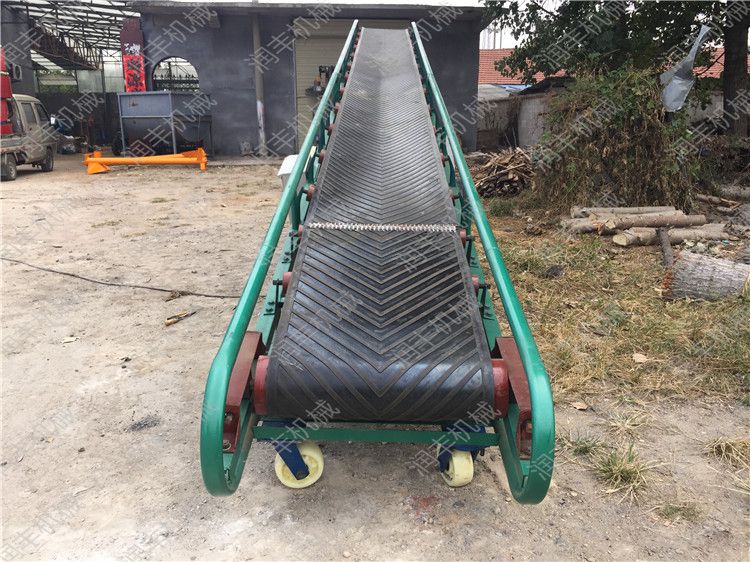 (5)倾斜输送,移动式皮带输送机有一种的平行输送的,还有一种是利于装卸输送的,倾斜高度4-5米。